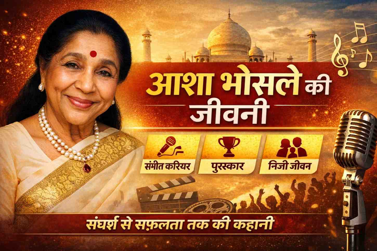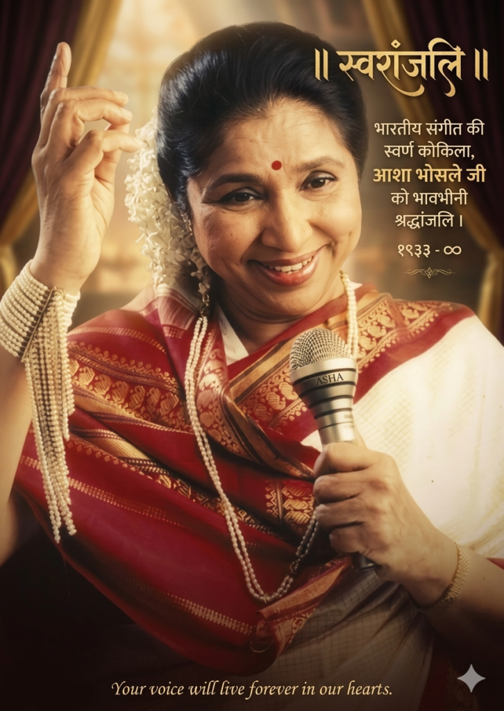 Asha Bhosle рднрд╛рд░рддреАрдп рд╕рдВрдЧреАрдд рдХреЗ рдПрдХ рдкреНрд░рдореБрдЦ рдирд╛рдо рд╣реИрдВ, рдЬрд┐рдиреНрд╣реЛрдВрдиреЗ рдЕрдкрдиреА рдЖрд╡рд╛рдЬрд╝ рд╕реЗ рдХрдИ рдкреАрдврд╝рд┐рдпреЛрдВ рдХреЛ рдкреНрд░рднрд╛рд╡рд┐рдд рдХрд┐рдпрд╛ рд╣реИред рдЙрдирдХреА рдЧрд╛рдпрдХреА рдореЗрдВ versatility (рдмрд╣реБрдореБрдЦреА рдкреНрд░рддрд┐рднрд╛) рдЗрддрдиреА рд╣реИ рдХрд┐ рдЙрдиреНрд╣реЛрдВрдиреЗ рд╣рд░ рдкреНрд░рдХрд╛рд░ рдХреЗ рдЧрд╛рдиреЗтАФрдЧрд╝рдЬрд╝рд▓, рдкреЙрдк, рдлрд┐рд▓реНрдо, рд▓реЛрдХрдЧреАрдд рдФрд░ рдХреНрд▓рд╛рд╕рд┐рдХрд▓тАФрдореЗрдВ рд╡рд┐рд╢реЗрд╖рдЬреНрдЮрддрд╛ рдкреНрд░рд╛рдкреНрдд рдХреА рд╣реИред